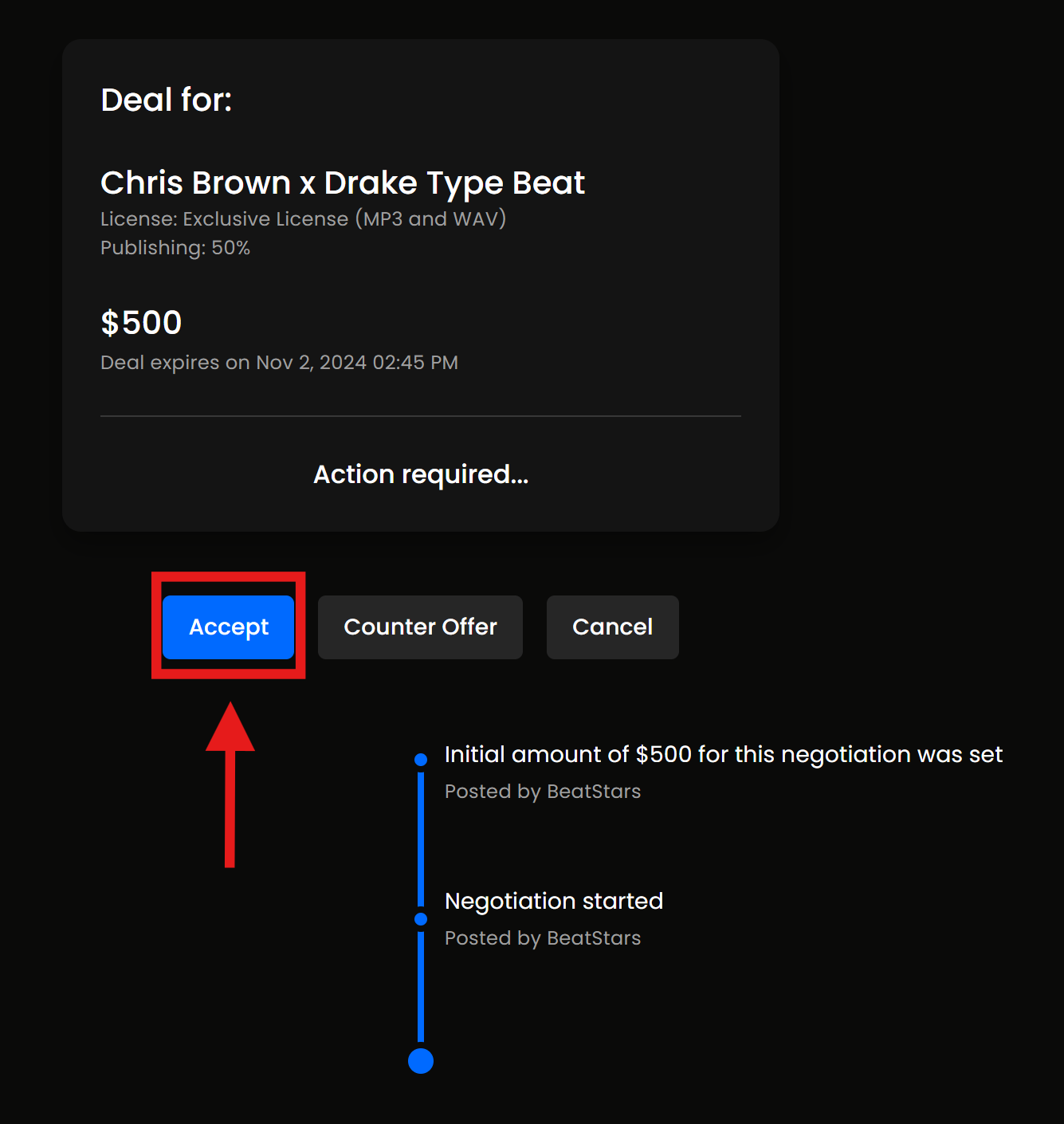 - Melden Sie sich bei Ihrem BeatStars-Konto an und besuchen Sie Ihren Verhandlungsbereich.