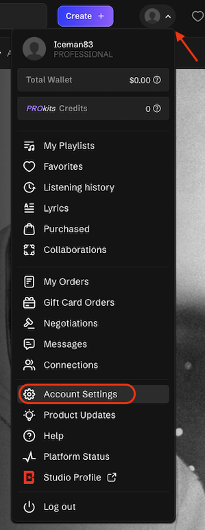Melden Sie sich bei Ihrem BeatStars-Konto an und navigieren Sie zu den Kontoeinstellungen.