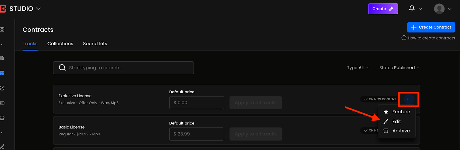 Melden Sie sich bei Ihrem BeatStars-Konto an und gehen Sie zum Studio.
