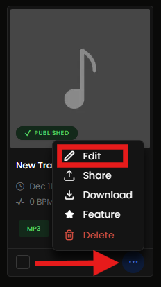- Klicken Sie auf die 3 Punkte rechts neben dem gewünschten Track und wählen Sie die Option "Bearbeiten".