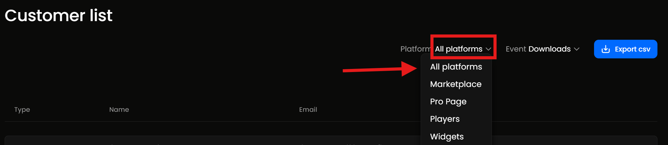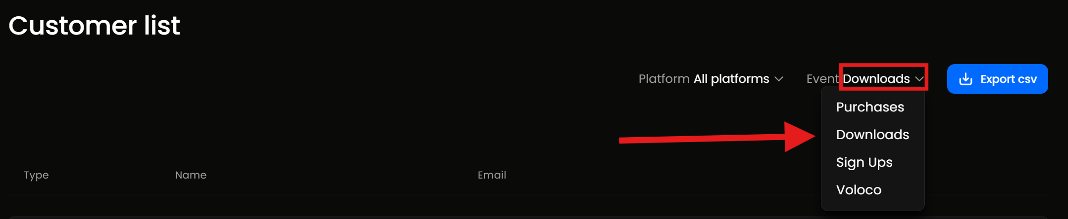 - You can also export your Customer list by selecting "Export CSV", which will provide the list in a CSV format.
