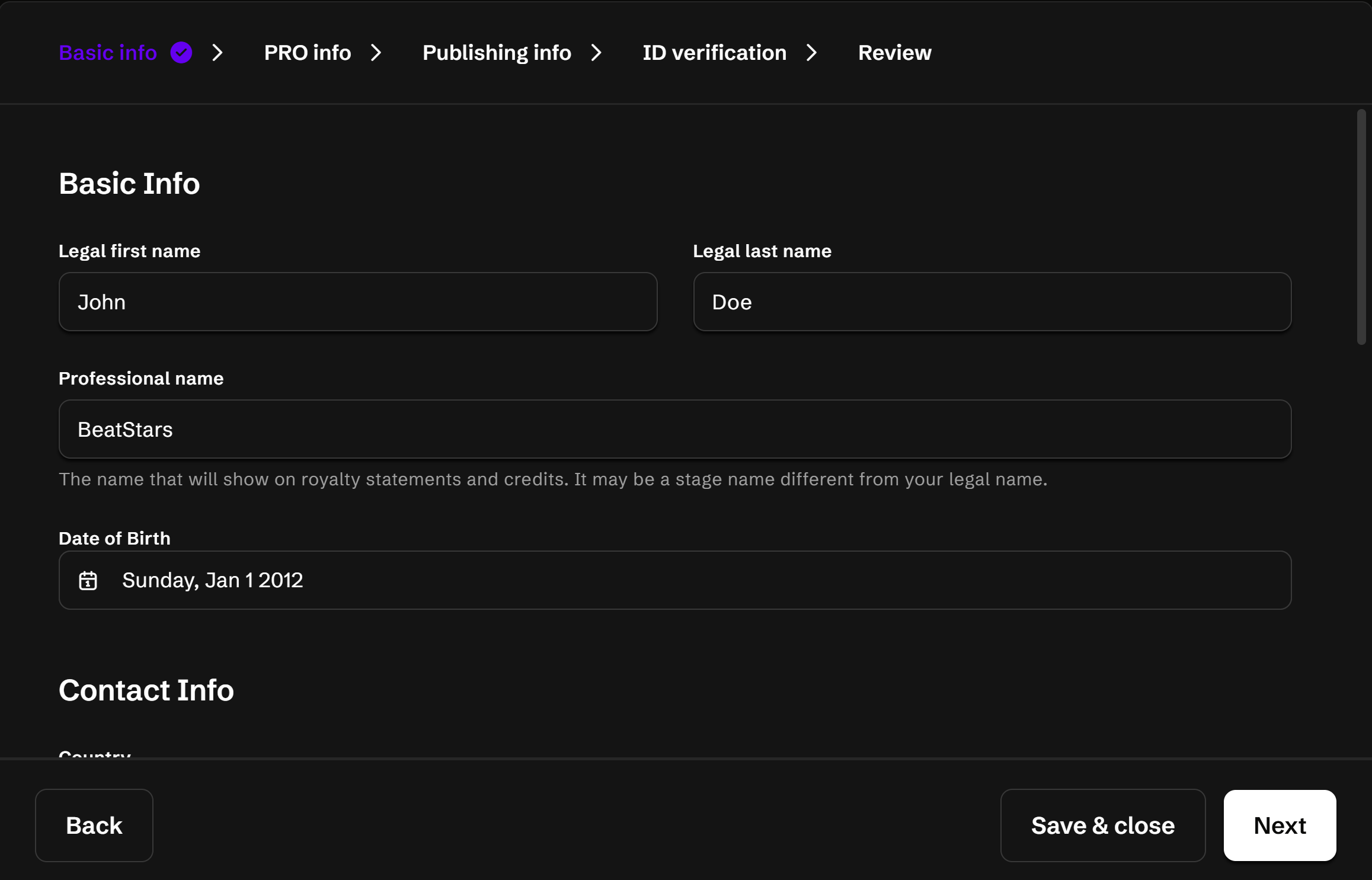 On the Writer Info tab, answer the questions required for BeatStars (and IMRO if selected), then click "Next".