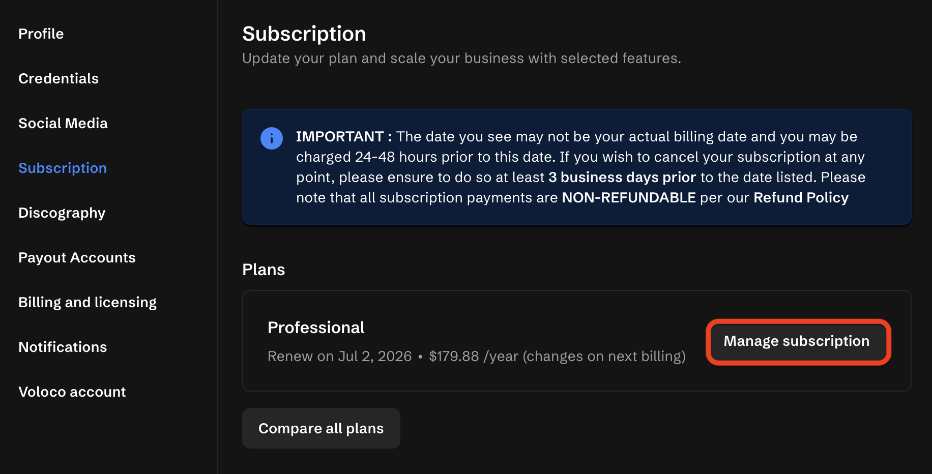 - Log in to your BeatStars account and visit the Subscription page in your account settings.