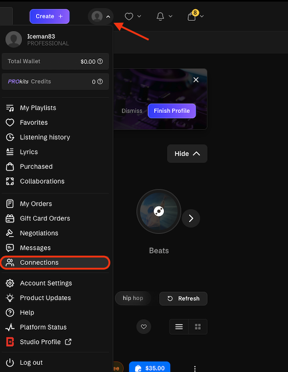 - Click on your profile icon and then select the "connections" option.