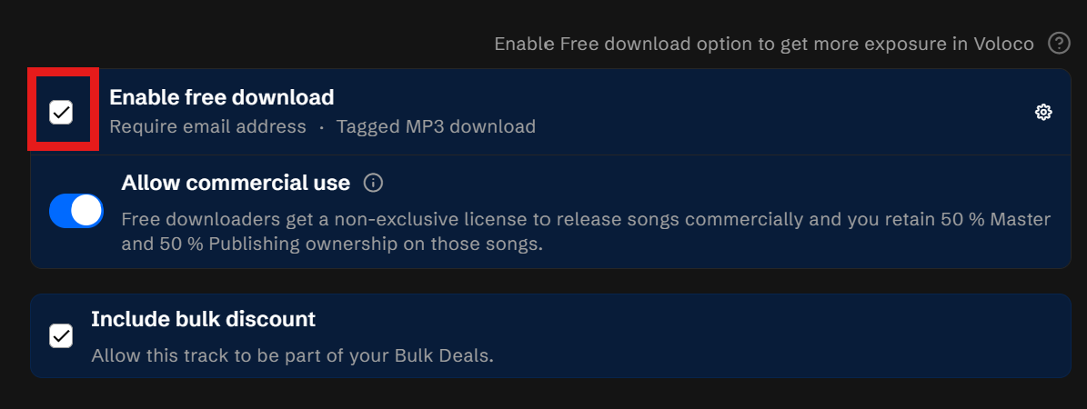 - Scroll down to the monetization section and click "Enable free download".