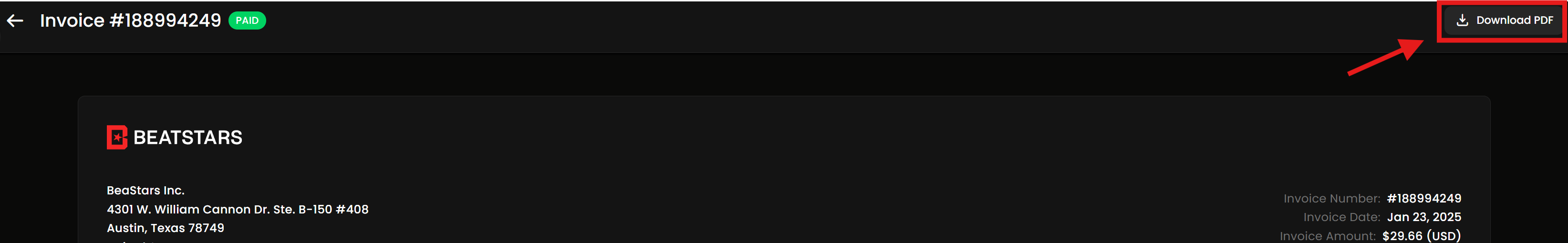 This guide shows you how to view and download invoices for BeatStars services such as Subscriptions, Promote, and BeatID directly from Studio.