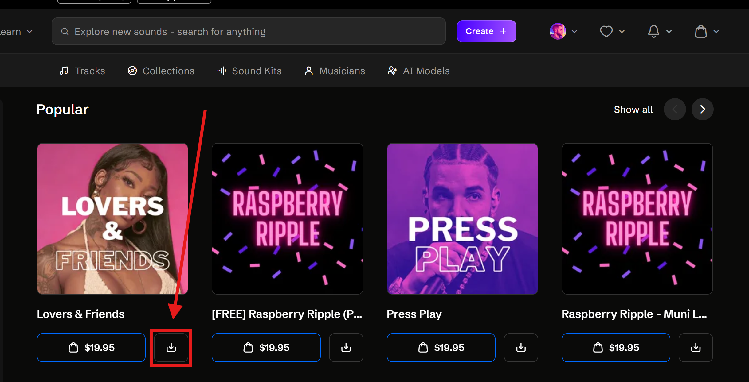 - Click the download icon on a beat with commercial use enabled for free downloads.