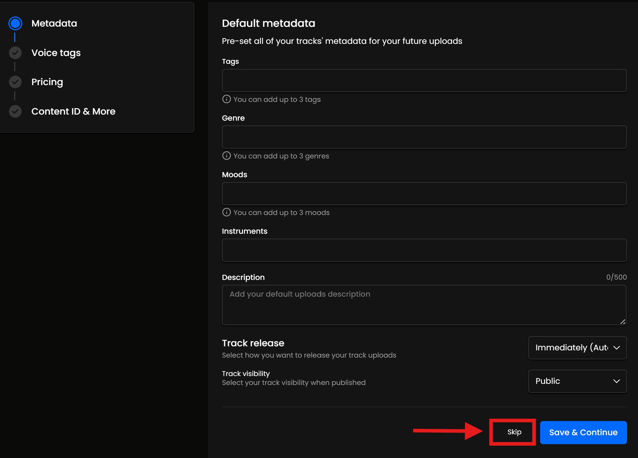 - Salta a la sección "Etiquetas de voz" para subir y editar tus etiquetas de voz para tus pistas.