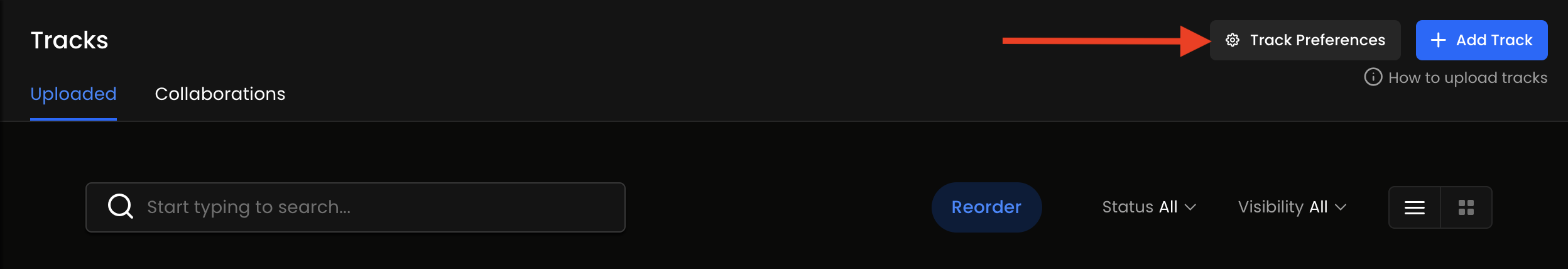 1. Dans votre BeatStars Studio, accédez à la section Pistes et cliquez sur Préférences de la piste.