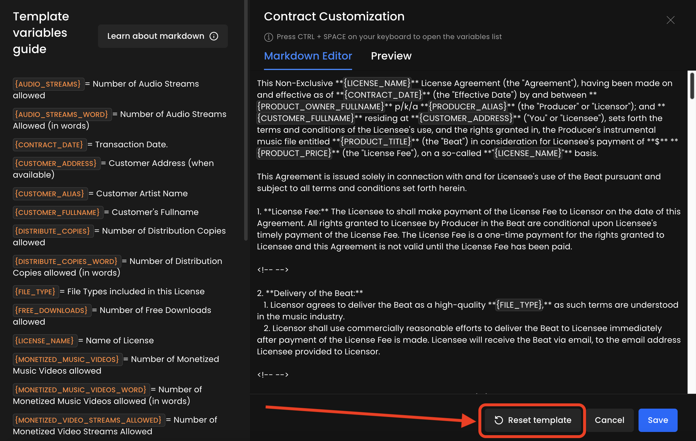 Dans cet article, vous apprendrez comment réinitialiser votre licence au modèle par défaut BeatStars dans Studio.