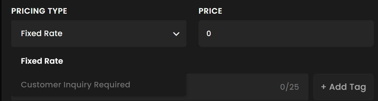 - Imposta il "TIPO DI PREZZO" per il servizio come “Tariffa Fissa” o “Richiesta del Cliente