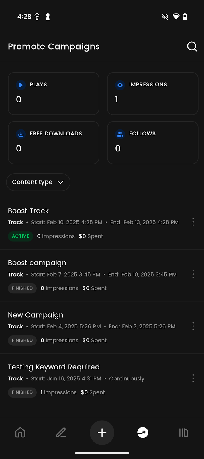 - Una volta creata la tua campagna, questa apparirà nella tua dashboard Promote per permetterti di monitorare le statistiche nei giorni successivi.