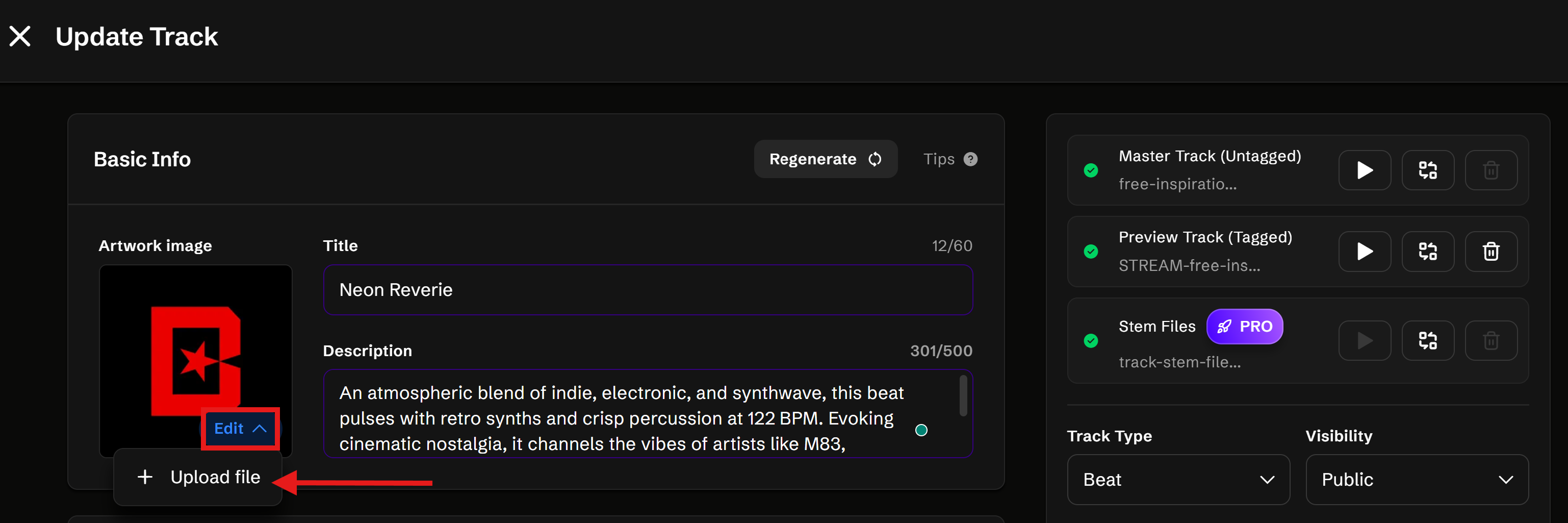 NOTA: Você também pode alterar isso a qualquer momento após publicar seu beat no BeatStars.