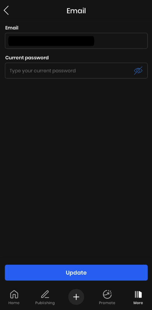 - Digite seu novo endereço de email e sua senha atual. Clique no botão "Atualizar" quando terminar.