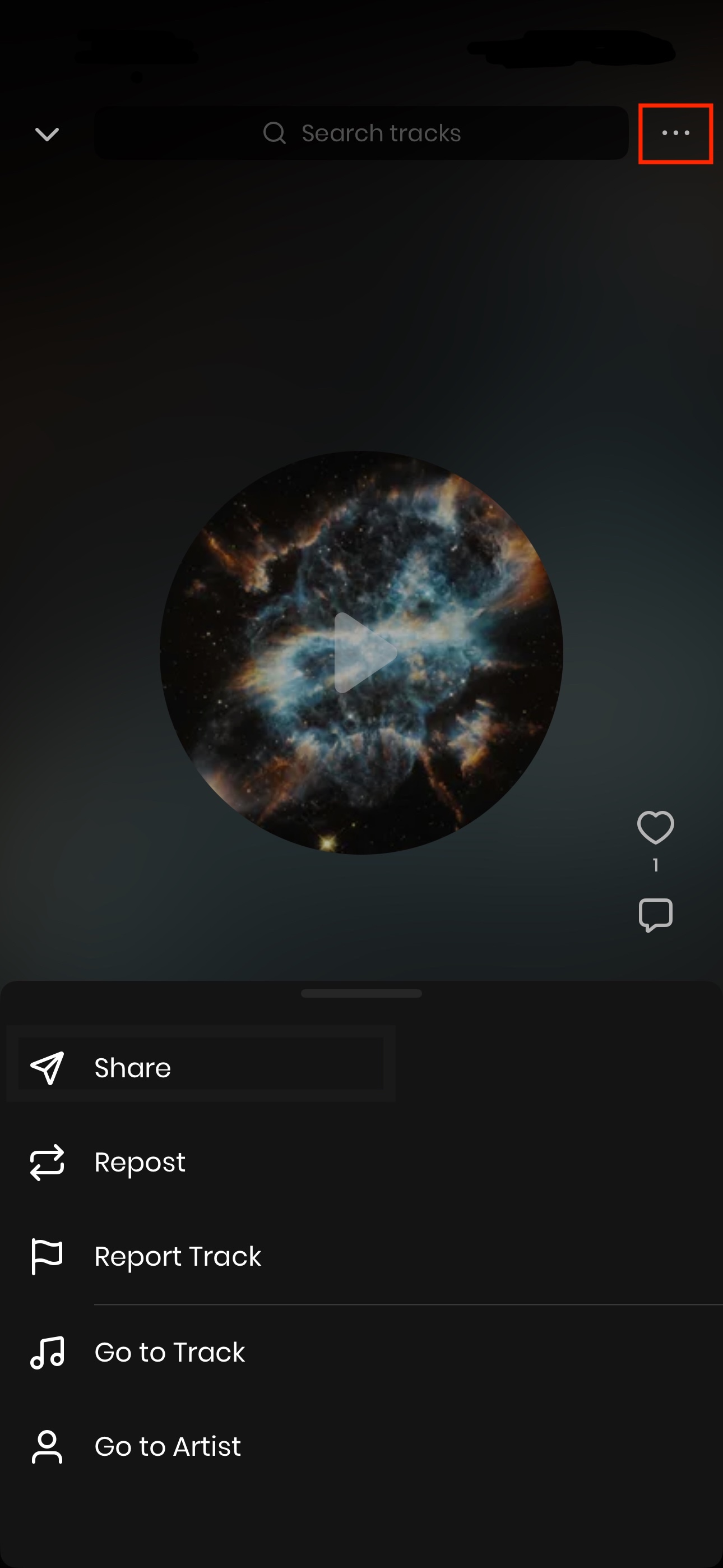 - Clique nos 3 pontos no canto superior direito da faixa que deseja compartilhar.