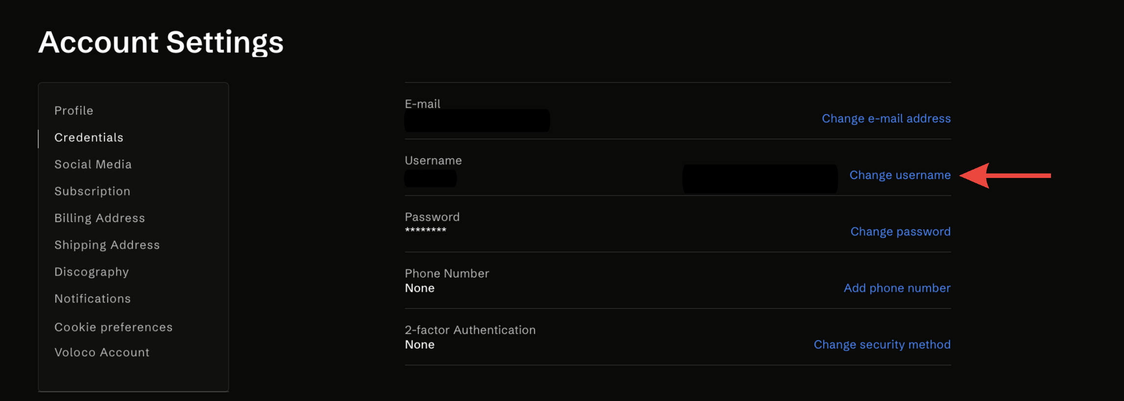 Clique na opção "Mudar nome de usuário".