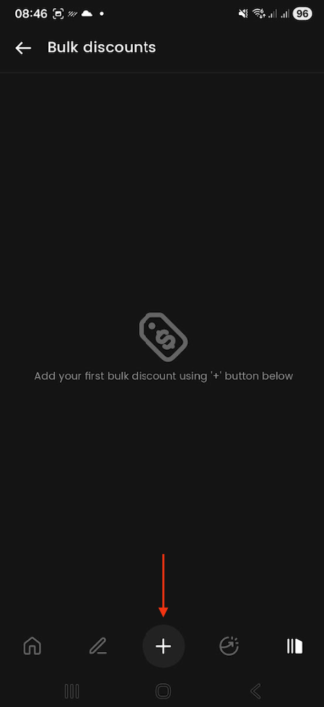 Clique no ícone "+" na parte inferior da tela para criar um novo desconto em massa.