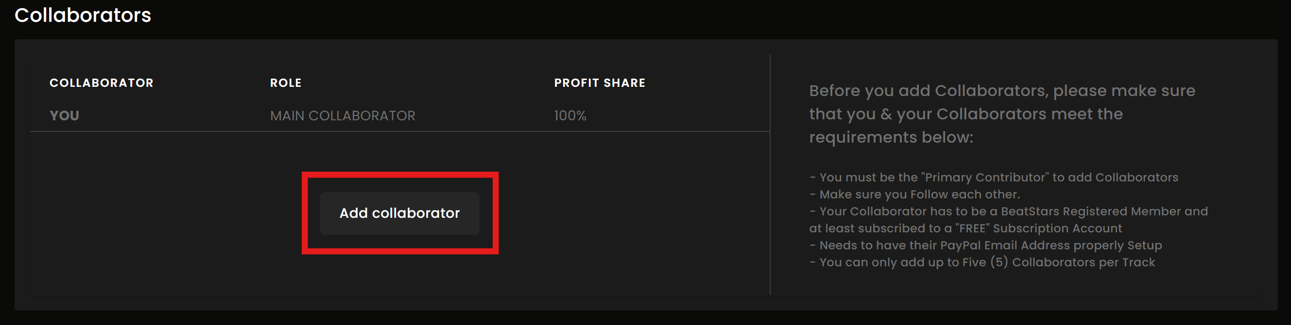 - 您的合作者必须是 BeatStars 注册会员,并至少订阅免费账户。